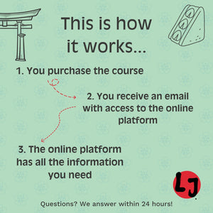 2. After purchasing the course, you will receive an emal with access to the online platform. You receive this email within 24 hours. If you have not received it, please send us an email to info@learnjapanese.academy and we will help you out.